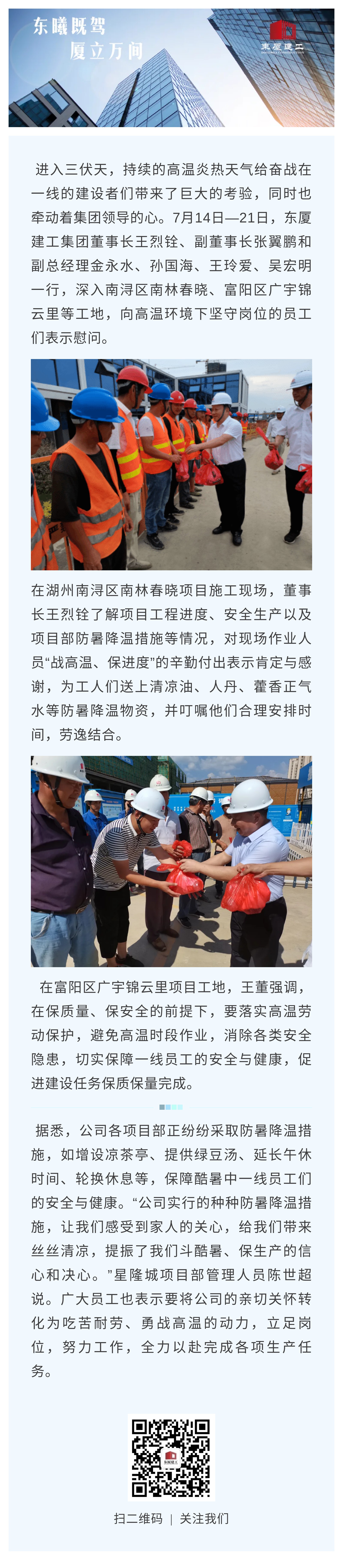 情系一線送清涼 齊心協(xié)力戰(zhàn)三伏|東廈建工開展高溫慰問活動