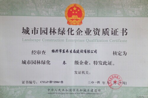 紹興市東禾生態(tài)建設(shè)有限公司獲得城市園林綠化三級資質(zhì),經(jīng)公司申報,紹興市柯橋區(qū)住房和城鄉(xiāng)建設(shè)局審核,紹興市住房和城鄉(xiāng)建設(shè)局批準(zhǔn),紹興市東禾生態(tài)建設(shè)有限公司獲得城市園林綠化三級資質(zhì)。