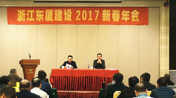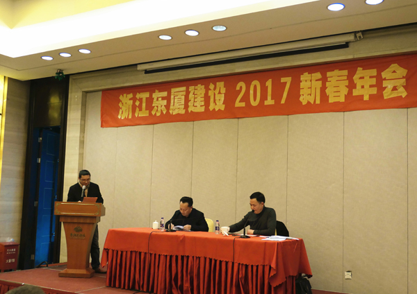 2017年元月9日下午,浙江東廈2017新春年會在柯巖鑒湖大酒店隆重召開。公司董事長王烈銓,總經(jīng)朱衛(wèi)洋及全體員工、項目經(jīng)理及技術(shù)骨干等100多人參加了會議。