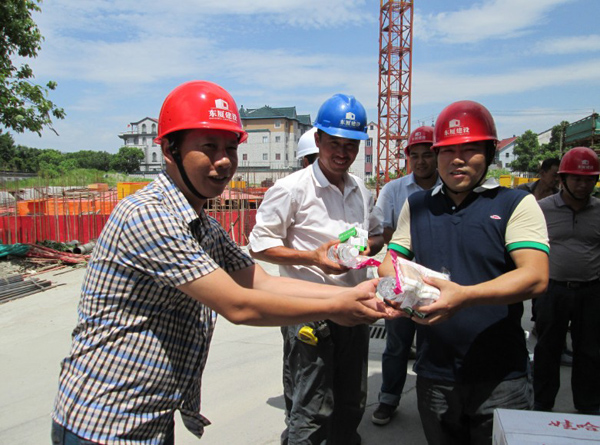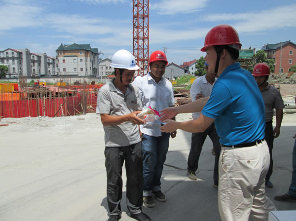 7月16日上午,由公司總經(jīng)理朱衛(wèi)洋,主管質(zhì)量、安全的副總施國明攜同公司工程部員工深入公司在建項目金隆家紡廠房工程施工工地,對工地的全體員工進行高溫慰問,同時對工地質(zhì)量、安全管理進行了例行檢查。工地上熱浪襲人,火熱的驕陽下,建設(shè)者們頂著烈日的陽光正抓緊施工,汗水浸透了工作服。公司領(lǐng)導(dǎo)來到工地了解他們生產(chǎn)生活情況,向他們送上清涼慰問品!