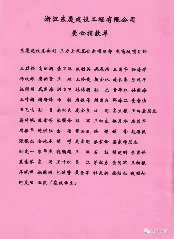病魔無情,東廈有愛。丁勝標(biāo)一家的遭遇牽動(dòng)著東廈每個(gè)人的心,為幫助小丁家度過難關(guān),我司工會(huì)率先發(fā)出了募捐倡議書,短短二天時(shí)間已籌集資金9萬余元。丁勝標(biāo)家的困難也引起了鎮(zhèn)政府領(lǐng)導(dǎo)的關(guān)心,2月12日下午,楊汛橋鎮(zhèn)黨委副書記沈建祥和鎮(zhèn)黨委委員蔣利強(qiáng)代表鎮(zhèn)總工會(huì)前來我公司,送來了給丁勝標(biāo)同志2000元的慰問金,帶來暖心的問候。 捐款和慰問金將由我司工會(huì)主席朱利英一并轉(zhuǎn)交給小丁,并傳達(dá)各級(jí)領(lǐng)導(dǎo)對(duì)他家的關(guān)愛。點(diǎn)滴的愛心匯成愛的暖流,祝愿小丁家倆孩子能危為安,度過難關(guān)。