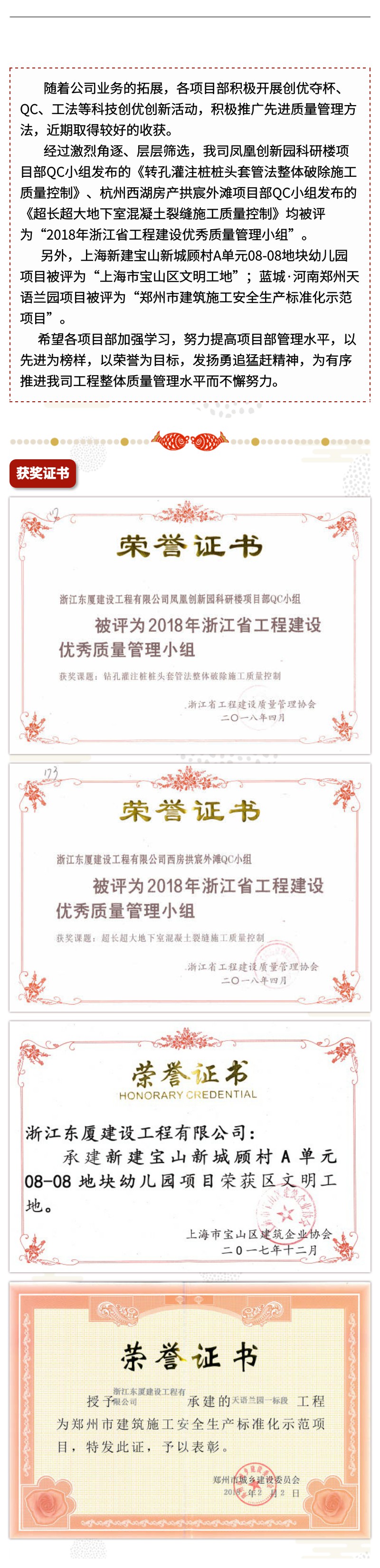 祝賀公司鳳凰創(chuàng)新園等項目部獲獎