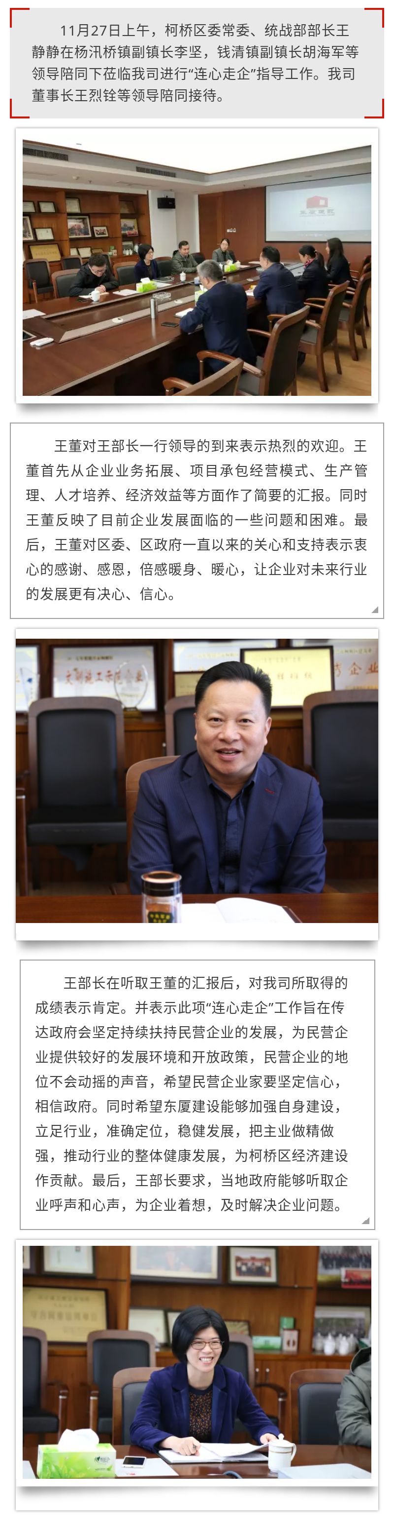 柯橋區(qū)委常委、統(tǒng)戰(zhàn)部部長王靜靜等領(lǐng)導(dǎo)蒞臨我司進行“連心走企”指導(dǎo)!