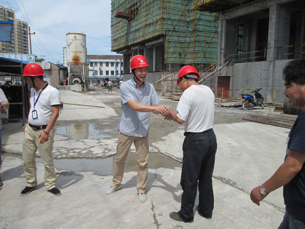| 連日來,浙江大地驕陽似火,持續(xù)高溫,公司領(lǐng)導(dǎo)十分關(guān)心項目工地一線員工。7月18日,受王烈銓董事長委托,總經(jīng)理朱衛(wèi)洋、副總施國明、工程部經(jīng)理吳宏明一行先后走訪了福全農(nóng)民公寓、江橋華府壹號等項目工地現(xiàn)場,慰問在高溫下仍堅守崗位的項目部員工及建筑工人,為他們送上了毛巾、香皂、礦泉水、防暑藥品等慰問品。 每到一處,公司領(lǐng)導(dǎo)都與員工進(jìn)行親切交流,對他們奮戰(zhàn)高溫、揮汗拼搏表示感謝。朱總親切詢問、了解了項目員工身體和生活情況,叮囑他們要注意身體,并要求有關(guān)人員在夏季高溫時段要做好防暑降溫和飲食安全工作。 同時,朱總一行還對項目工程的安全生產(chǎn)、工程質(zhì)量和進(jìn)度情況進(jìn)行了檢查,指出在保證項目進(jìn)度控制、質(zhì)量控制、安全生產(chǎn)的同時,要確保項目一線人員的勞動安全和身體健康,科學(xué)合理安排作業(yè)時間,并鼓勵大家一定要克服困難,戰(zhàn)勝高溫酷暑,確保各項工作順利完成。