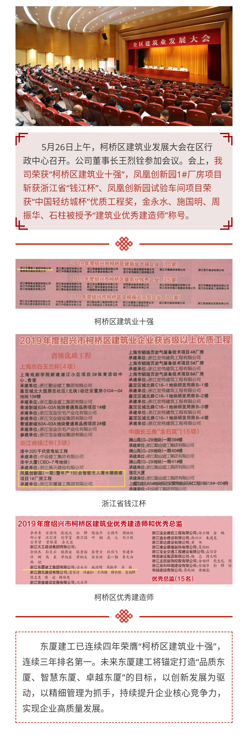 我司榮獲“柯橋區(qū)建筑業(yè)十強(qiáng)企業(yè)”三連冠