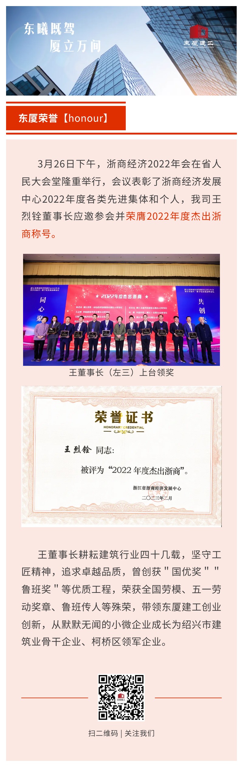 【東廈榮譽(yù)】王烈銓董事長榮膺2022年度杰出浙商稱號(hào)