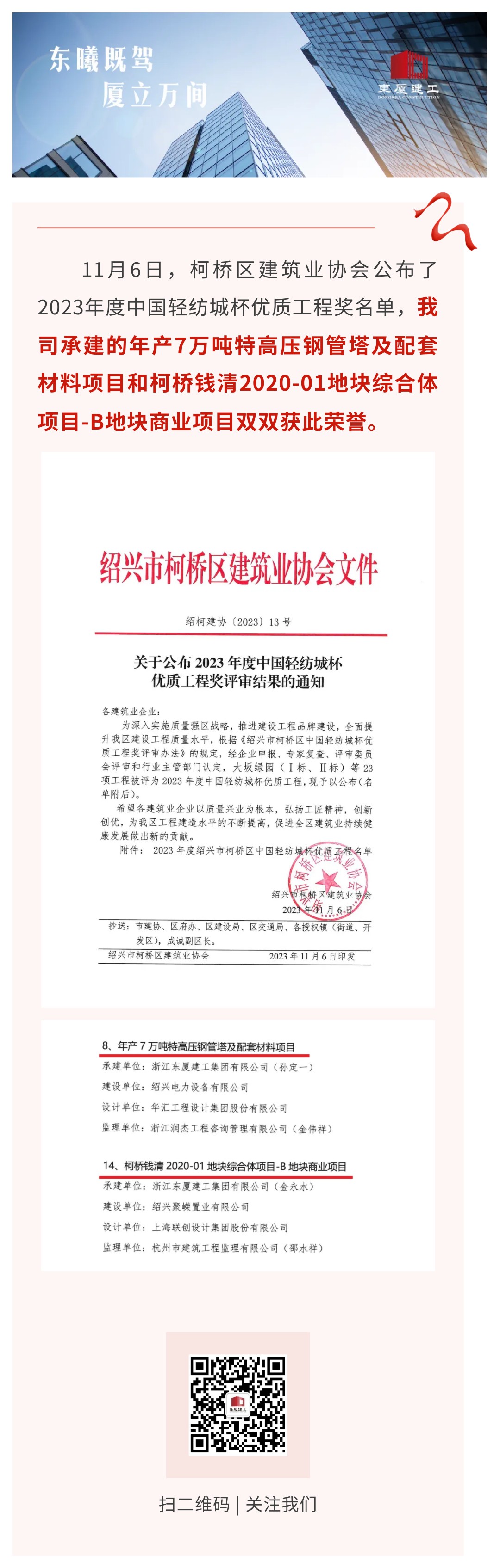 【東廈榮譽】我司榮獲兩項中國輕紡城杯