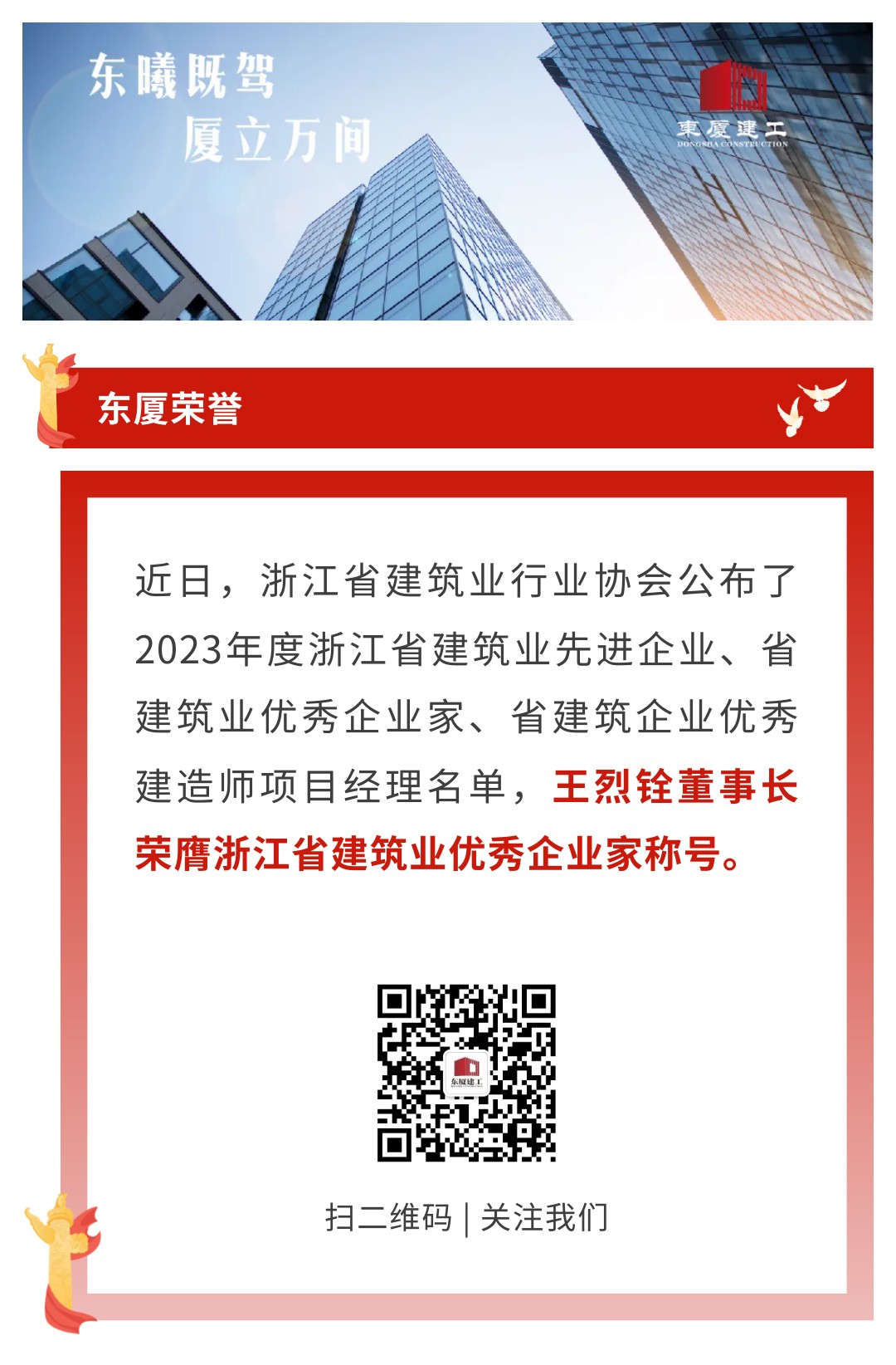 喜訊!王董事長榮膺浙江省建筑業(yè)優(yōu)秀企業(yè)家稱號
